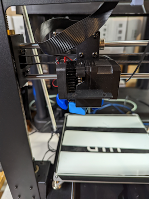 With the extruder off and a clear view of the hot end, power up the printer and preheat.