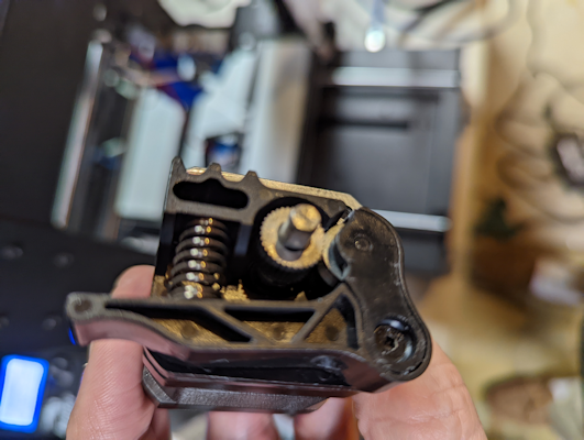Once things have cooled down, remove the extruder cooling fan and unplug the extruder. Brush off the extruder gear, fan and anything else that has accumulated dust or dirt.